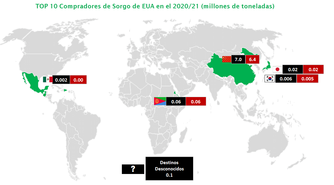 TOP 10 – Compradores de Maíz de EUA (Millones de Toneladas).