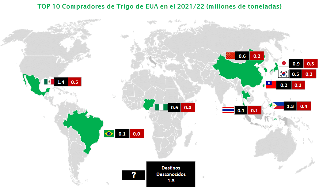 TOP 10 – Compradores de Trigo de EUA (Millones de Toneladas).