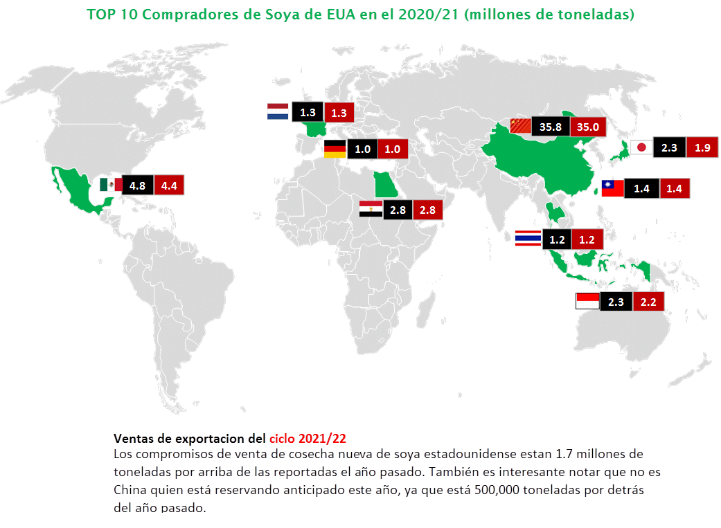 TOP 10 – Compradores de Soya de EUA (Millones de Toneladas).