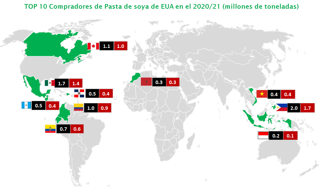 TOP 10 – Compradores de Pasta de Soya de EUA (Millones de Toneladas).